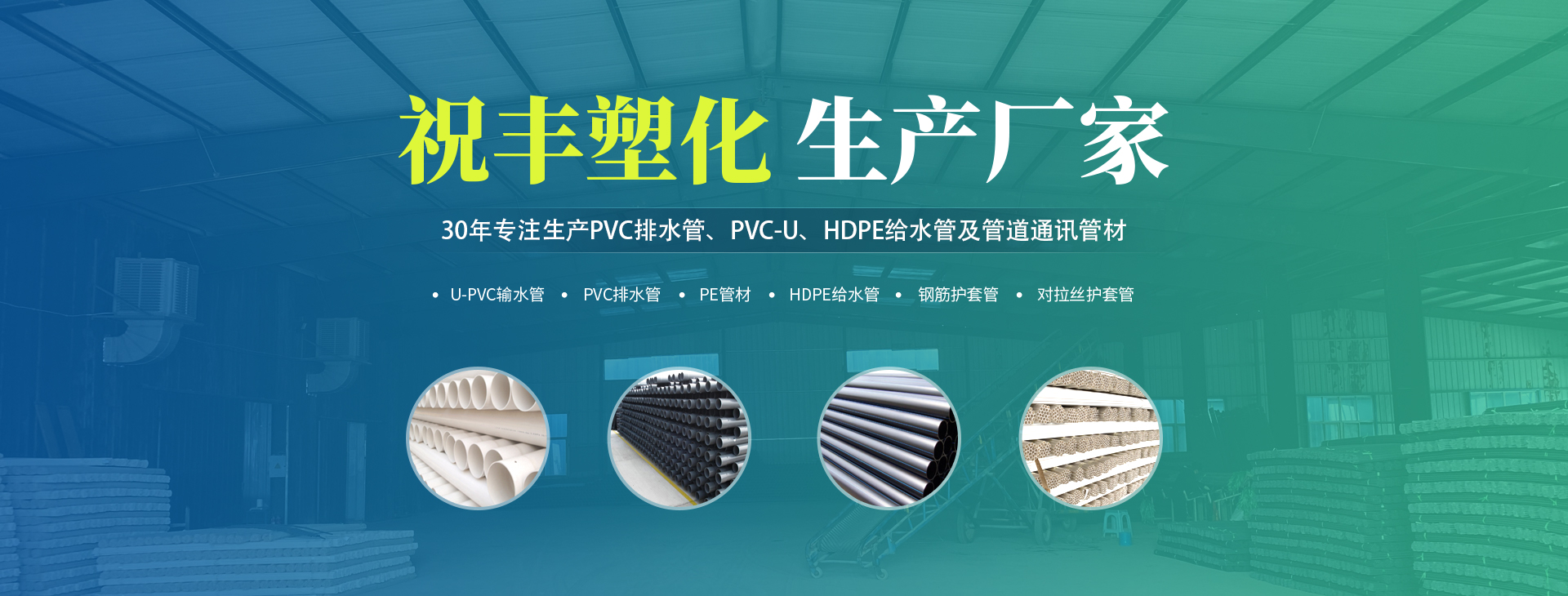 安陽市祝豐塑化有限公司坐落在滑縣工業(yè)園區(qū),東臨大廣高速,西臨京珠高速,是鄭州、鶴壁、安陽、濮陽四個城市的輸紐,交通便利、環(huán)境優(yōu)美。 公司始建于八十年代,經過二十余年的艱辛創(chuàng)業(yè),規(guī)模不斷壯大,由十多萬元資產的小廠,發(fā)展到現占地面積達一萬多平,建筑面積一萬平,資產2000多萬元管材生產企業(yè)。公司生產PVC-U、PVC排水管、HDPE給水管、鋼筋護套管管道通訊管材等產品,廣泛用于農田節(jié)水、高山引水、人畜用水、建筑、電力通訊等多種用途,品種齊全。為了滿足用戶需求,可承攬各種給水、節(jié)水、灌溉工程。“祝豐塑化”憑借強勁的實力,優(yōu)良的管理水平。“以質量求生存,以信譽求發(fā)展”的原則全力以赴和大家共同塑造美好未來。..